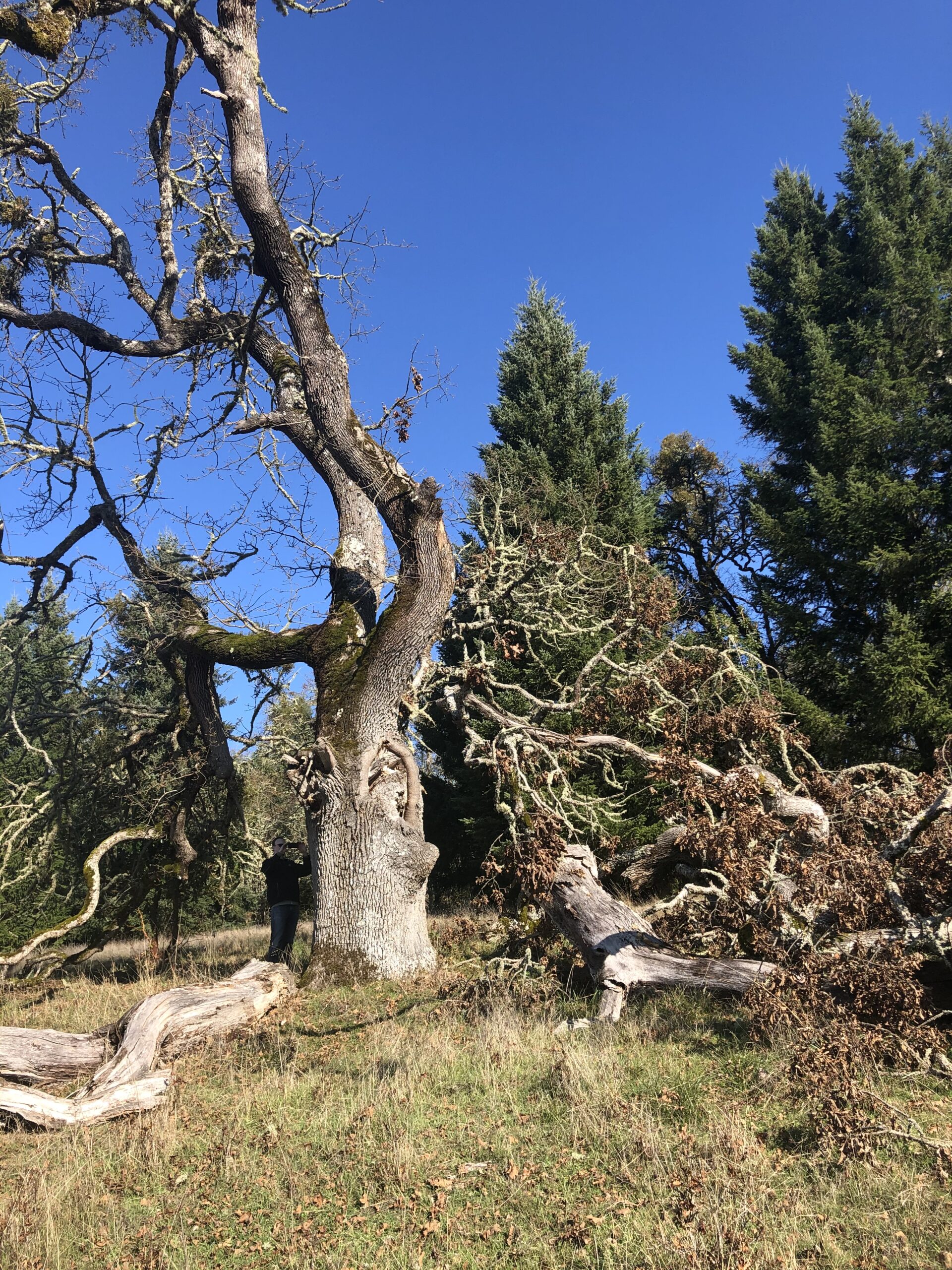 My grandparents introduced me to oak trees in 1996 on their ranch in the Willamette Valley—a playground of ponds, creeks, crops, woods, pasture, oak prairie, and savannah. I remember growing up, the smell of the air and soil was different under the oaks than it was in the forest. The long branches and sturdy trunks of the oaks are perfect for climbing—or for admiring from below. I knew these trees were significant because they were sturdy, old, and big. And they are changing over time.