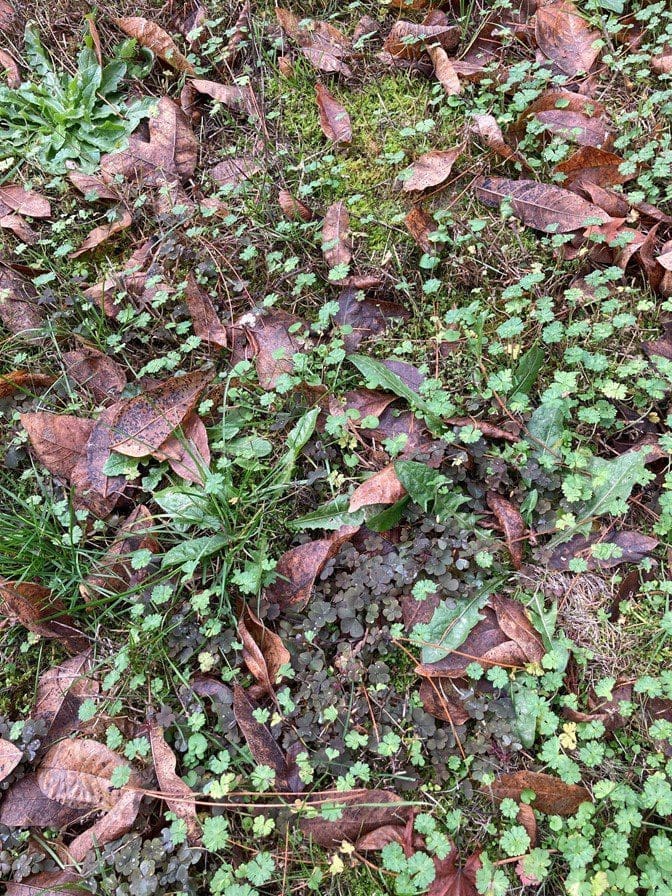 - There was only grass when we moved in, but now a variety of low-growing plants, all “volunteers”, have moved in. Having a diversity of plants increases the likelihood of a diversity of organisms needed to keep the habitat thriving.