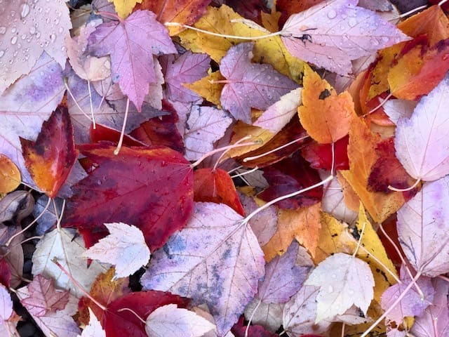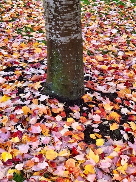 “I love this time of year with our deciduous trees turning marvelous colors and leaves drifting in the breeze. My idea about how I deal with those leaves has certainly shifted over the years. When we first moved into our home 41 years ago I would spend hours gathering up every leave and putting them in bags to be hauled away. I can still remember the scratches on my arms from reaching into the azaleas to get every fallen tree leaf. As well as the effort of raking them from the lawn. Then I started working in the woods at Tryon Creek State Natural Area. Each year I would watch the leaves come down and cover everything. The rangers would blow the leaves off of the parking lot and paved trails into the forest. The rains would come and these leaves would form a carpet that provided habitat for wintering invertebrates. As the season progressed the leaves began to disintegrate and form a natural layer of compost. As spring came dormant plants began poking up through the leaf layer and worm mounds showed that the earth worms were pulling bits of leaves underground. Now the leaves were helping to bring nutrients back to the soil and to the plants as the cycle of life was renewed.