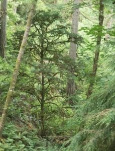 This long-lived tree is very slow-growing. The juvenile-looking tree above may in fact be 75-100 years old. The Oswego Lake Watershed Council is working very hard to propagate and plant Pacific Yew in our native forests. They will reach out from the shady understory and grow into the light for a thousand years or more. May they lead us to a brighter future.